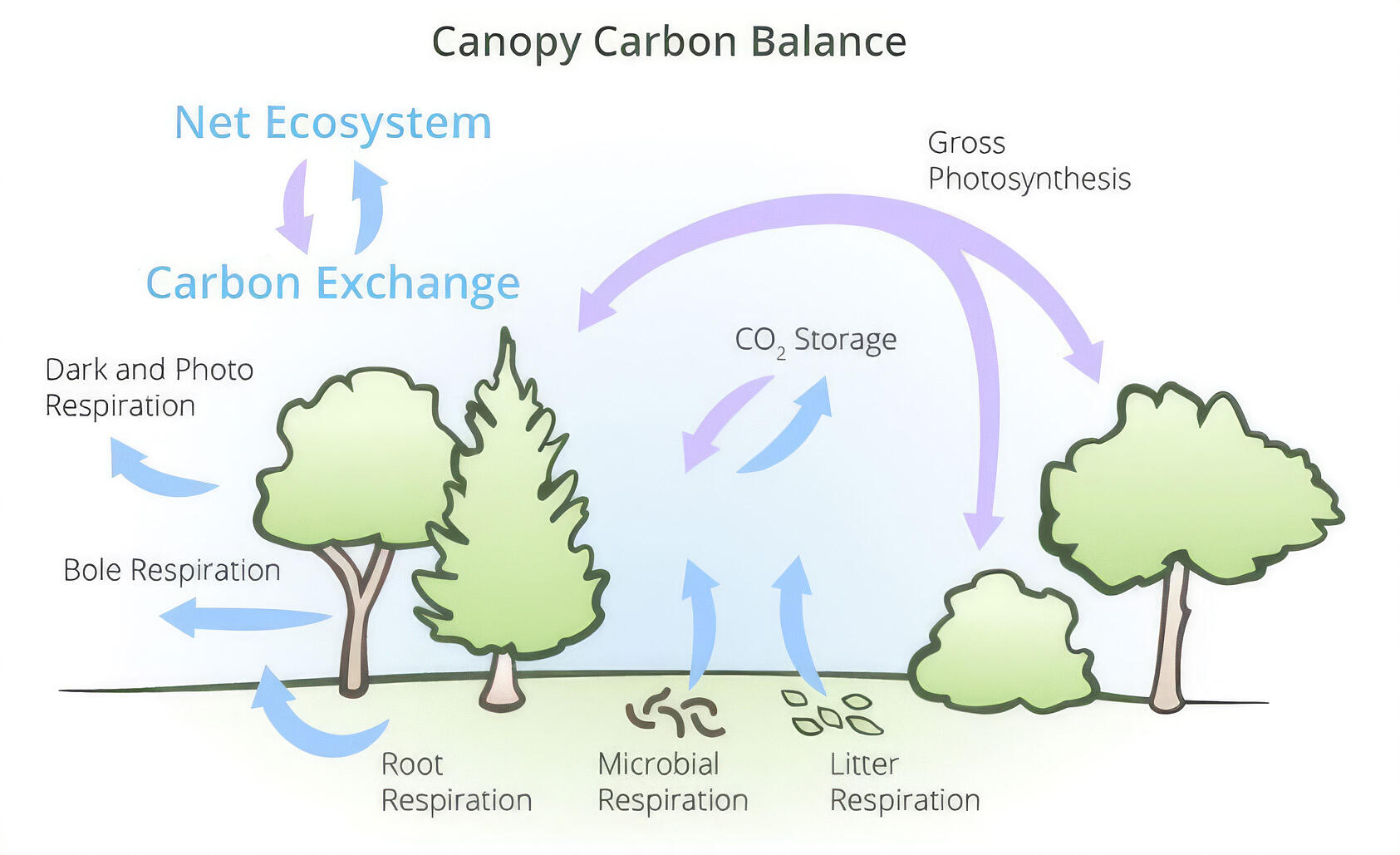 In the science of tree sequestered carbon, there are a number of terms used with specific meanings; these are described below.Carbon stock (tC or tCO₂ equiv.): this is the amount of carbon (in units of tonnes carbon or carbon dioxide equivalent), called ‘green carbon’, stored in land plants or in the case of offshore seagrass meadows, called ‘blue carbon’. The stock calculation may or may not include plant roots but does need to be stipulated. The calculations for SCEA do include the tree roots.Partitioning of carbon stocks above- and below-ground: when measuring the amount of carbon by plants, whether grasses, shrubs or trees, it is good practice to distinguish carbon held above-ground level in the stems or trunks and branches, as distinct from the carbon held below-ground in the root system. The reason for the distinction or partitioning is that it is much more difficult to measure root-hosted carbon accurately compared to the above-ground portions of a plant.